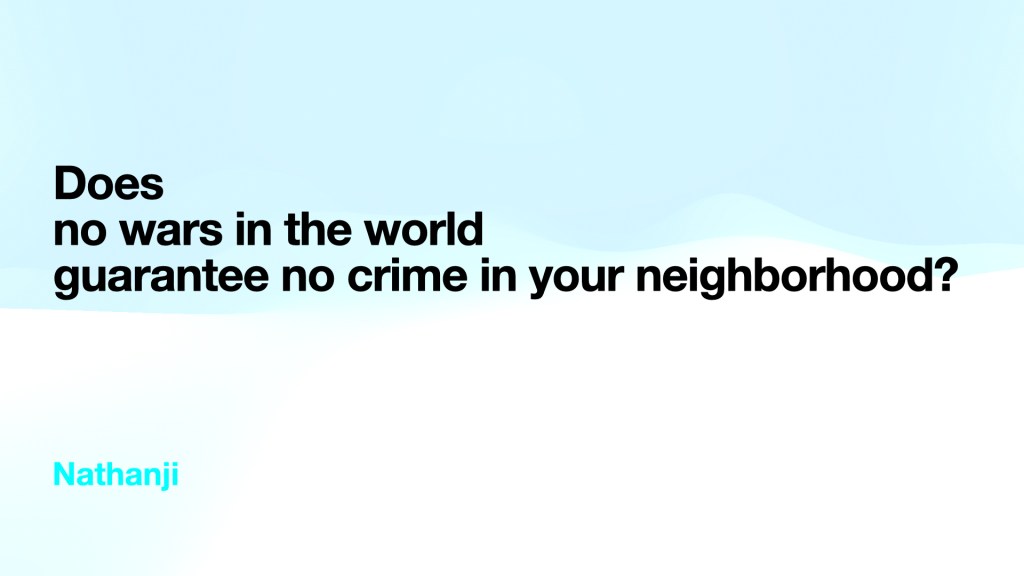 Wars On 21 juli 2024 door Nathan Doesno wars in the worldguarantee no crime in your neighborhood? Dit delen: Klik om te delen op X (Opent in een nieuw venster) X Klik om te delen op Facebook (Opent in een nieuw venster) Facebook Vind-ik-leuk Aan het laden... Gerelateerd