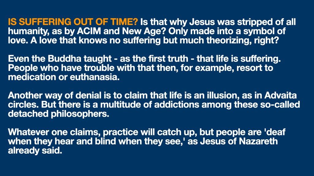 Is that why Jesus was stripped of all humanity, as by ACIM and New Age? Only made into a symbol of love. A love that knows no suffering but much theorizing, right?