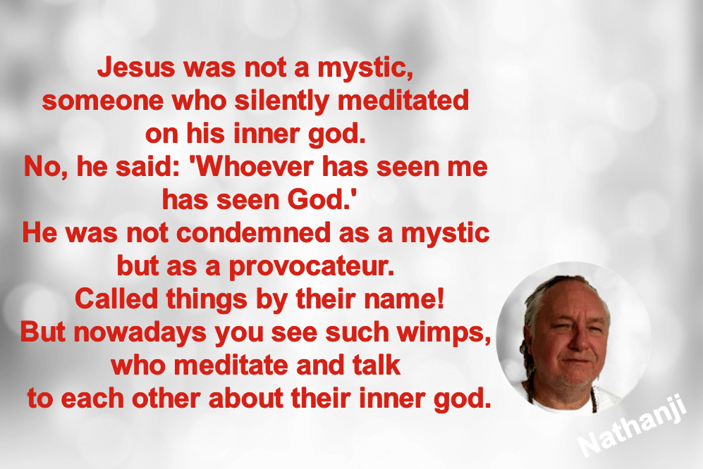 Jesus was not a mystic, someone who silently meditated on his inner god. No, he said: ‘Whoever has seen me has seen God.’