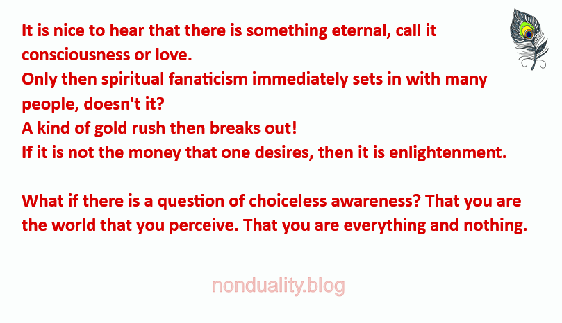What if there is a question of choiceless awareness? That you are the world that you perceive. That you are everything and nothing.