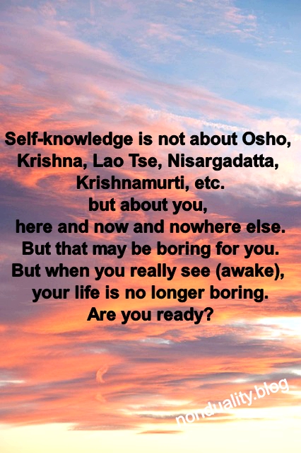 Self-knowledge is not about Osho, Krishna, Lao Tse, Nisargadatta, Krishnamurti, etc.